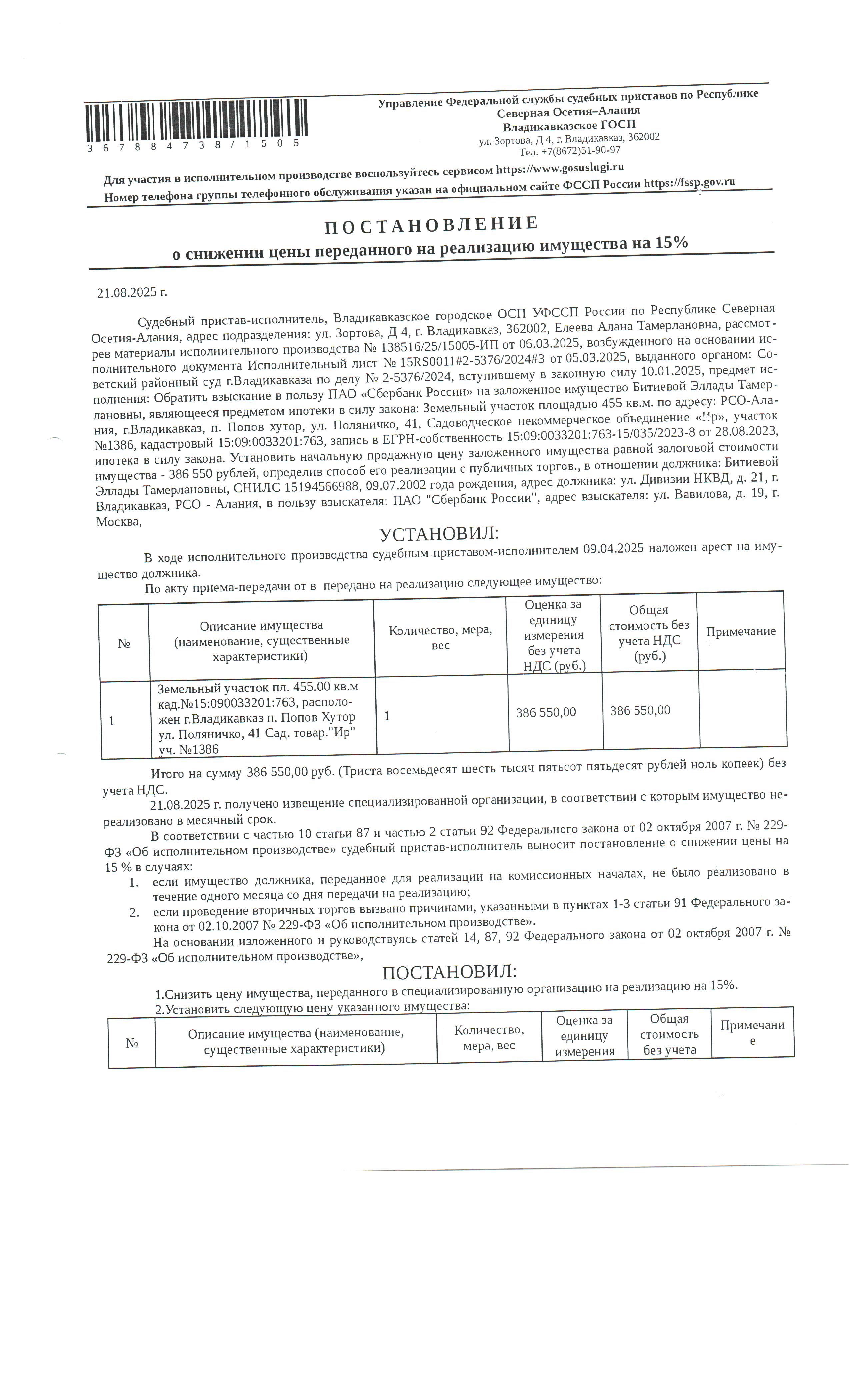 362002, . Республика Северная Осетия - Алания, Г ВЛАДИКАВКАЗ, УЛ ЧКАЛОВА