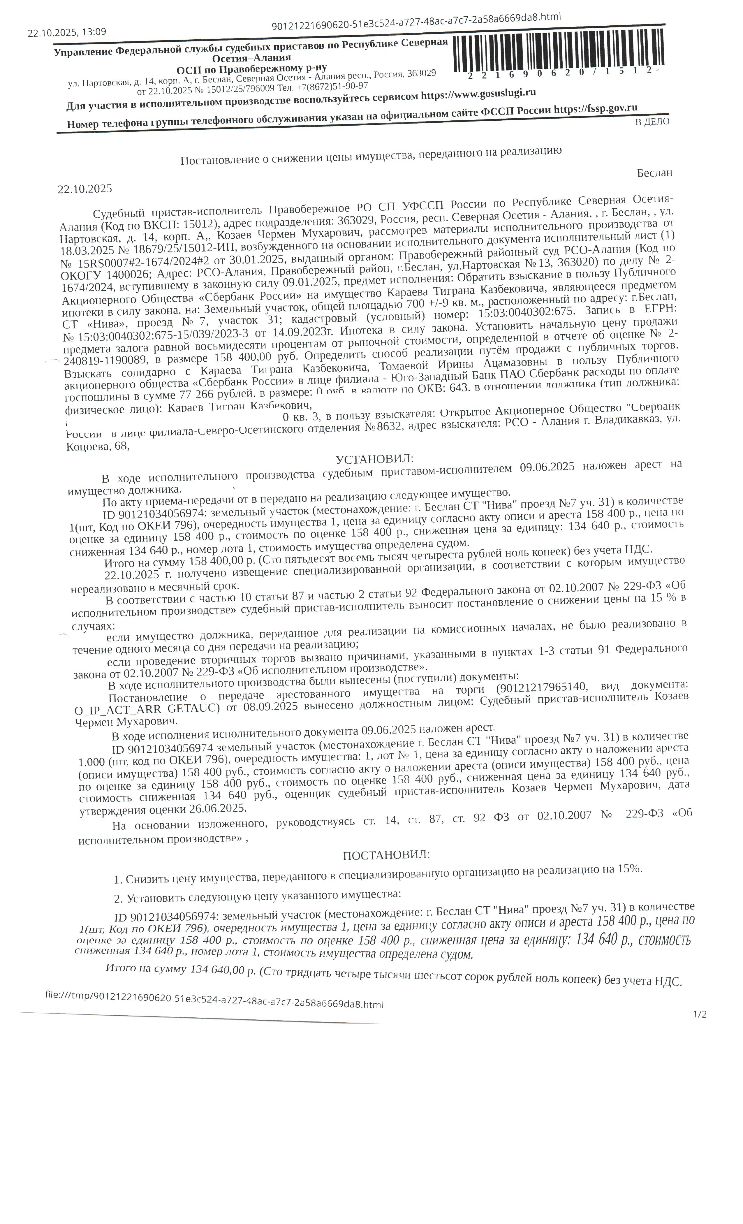 ТУ РОСИМУЩЕСТВА В РЕСПУБЛИКЕ СЕВЕРНАЯ ОСЕТИЯ - АЛАНИЯ
