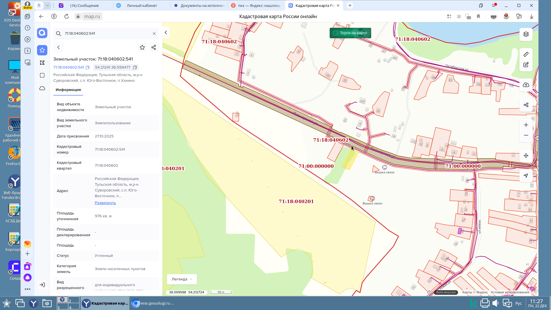 Кадастровый номер земельного участка 71:18:040602:541