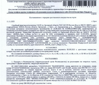 Аукцион по продаже арестованного имущества