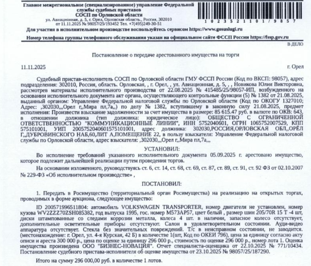 постановление СПИ СОСП по Орловской области ГМУ ФССП России Новиковой Ю.В.