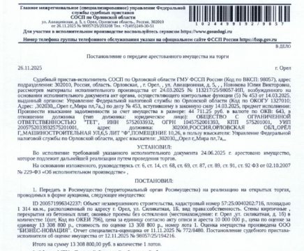 С победителем торгов договор купли-продажи подписывается после оплаты полной стоимости имущества, но не ранее десяти дней со дня торгов. Право собственности на имущество переходит к Покупателю в порядке, установленном законодательством РФ, после полной оплаты его стоимости. Покупатель оформляет права на движимое и недвижимое имущество, а также на земельные участки самостоятельно и за свой счет в соответствии с действующим законодательством.