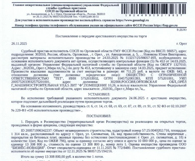 постановление СПИ СОСП по Орловской области ГМУ ФССП России Новиковой Ю.В.