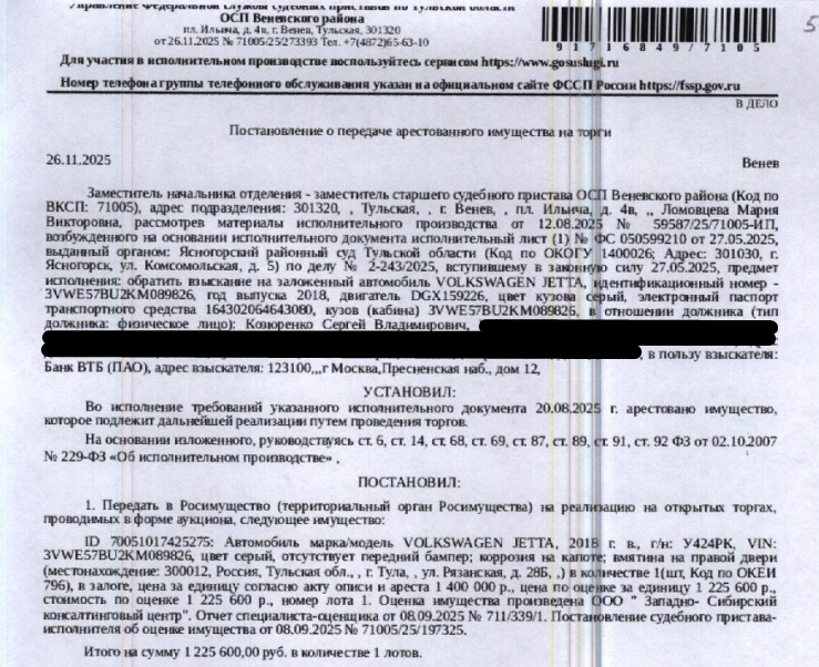 Аукцион по продаже арестованного имущества