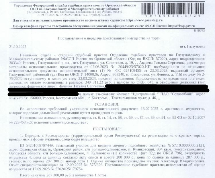 Аукцион по продаже арестованного имущества
