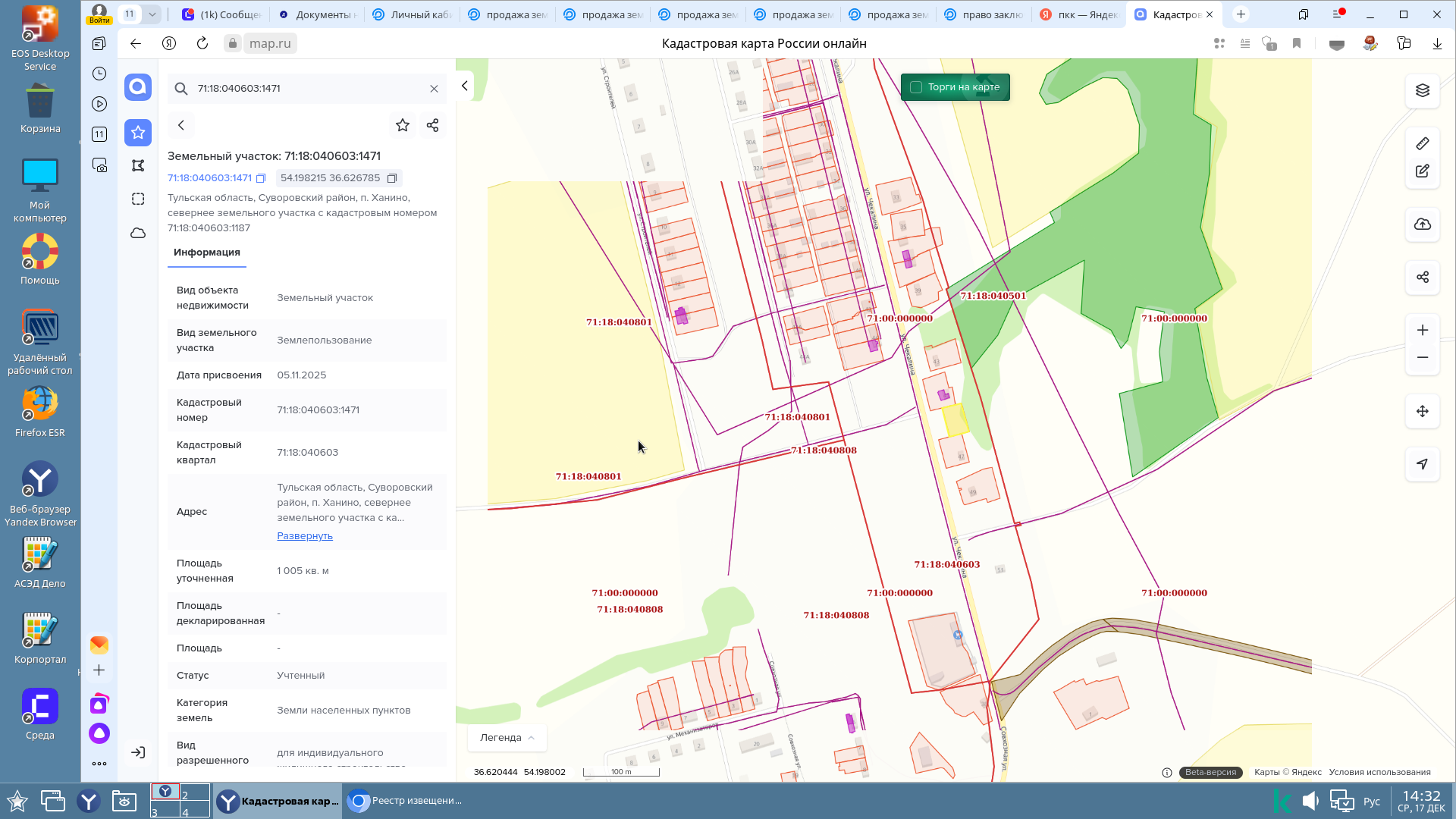 право заключения договора аренды земельного участка из земель населенных пунктов с кадастровым номером 71:18:040603:1471, площадь 1005 кв. м, местоположение: Тульская область, Суворовский район, п. Ханино, севернее земельного участка с кадастровым номером 71:18:040603:1187, вид разрешенного использования: для индивидуального жилищного строительства.