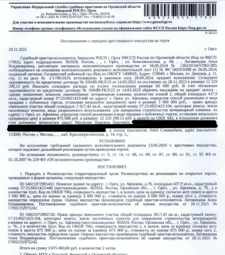 постановление СПИ Заводского РОСП г. Орла УФССП России по Орловской области Литвинцовой А.В.