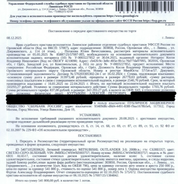 Аукцион по продаже арестованного имущества