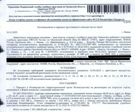 Аукцион по продаже арестованного имущества