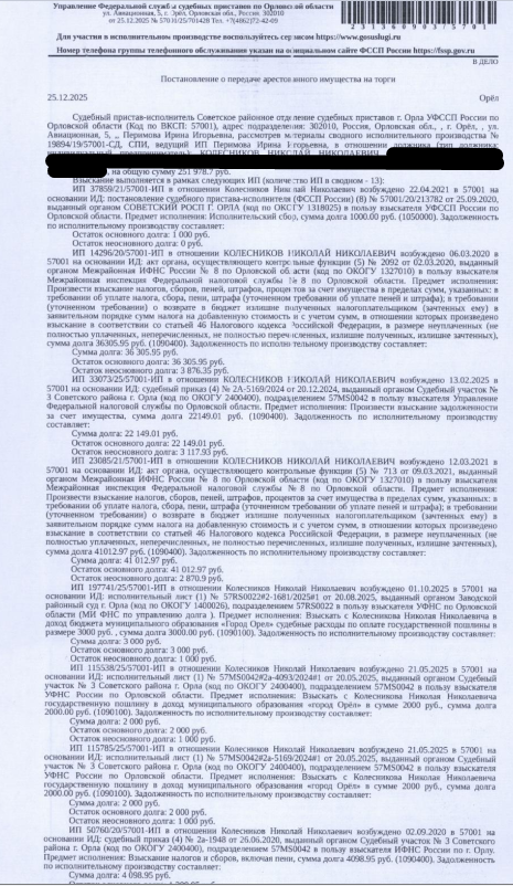постановление СПИ Советского РОСП г. Орла УФССП России по Орловской области Перимовой И.И.