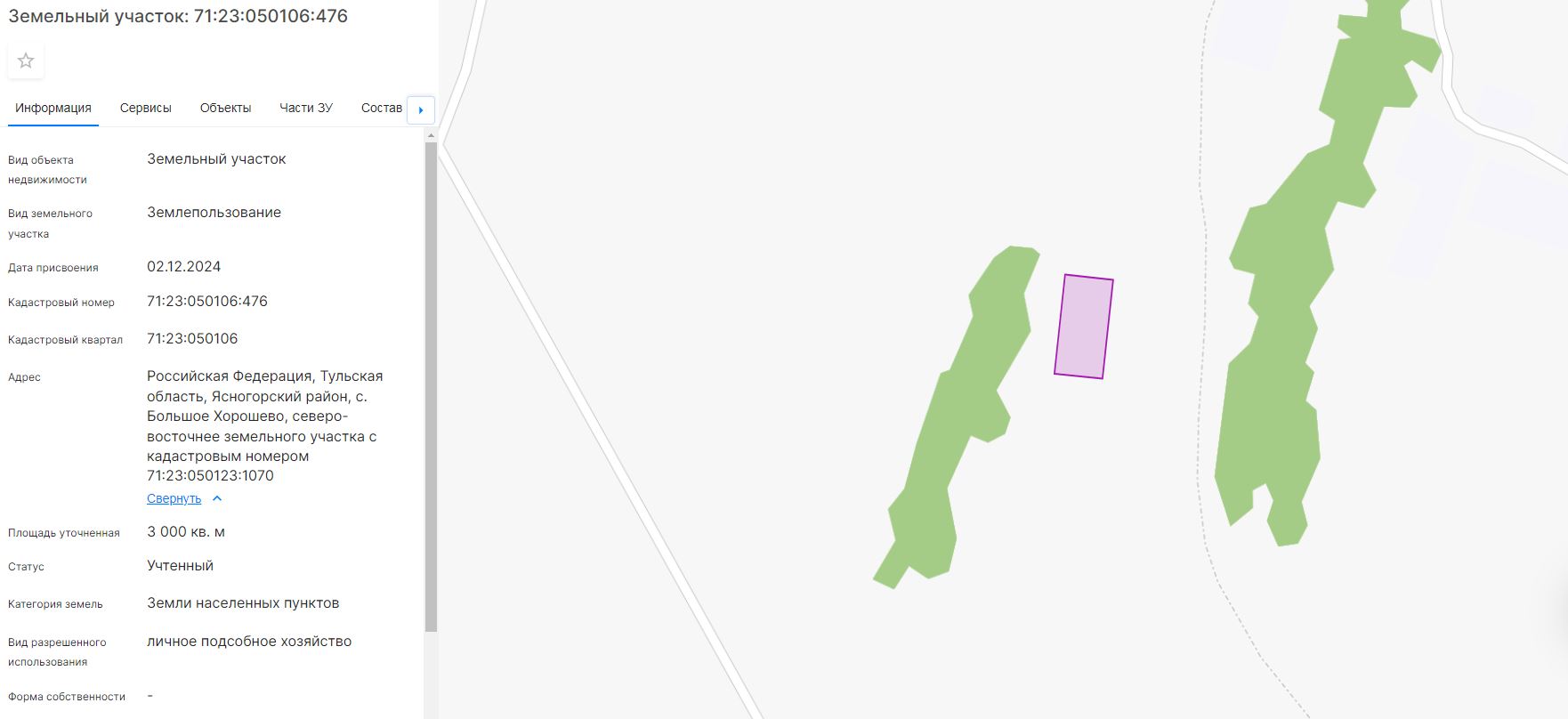 Право заключения договоров аренды земельных участков из земель населенных пунктов с кадастровыми номерами 71:23:050106:478, 71:23:050106:477, 71:23:050106:476, виды разрешенного использования: для ведения личного подсобного хозяйства.