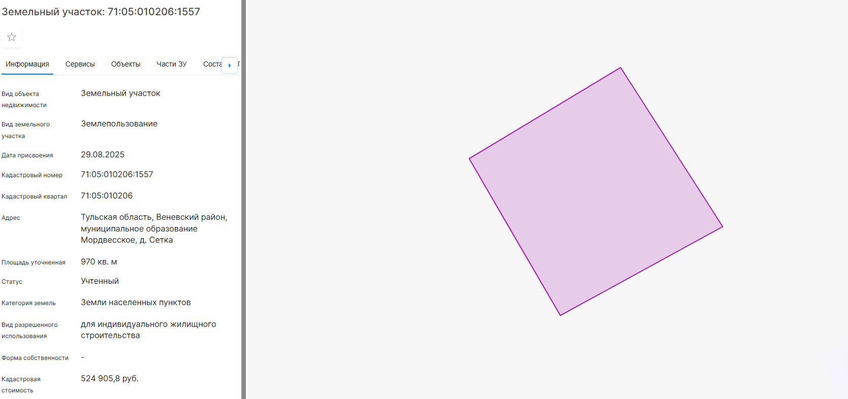 Кадастровый номер земельного участка 71:05:010206:1557