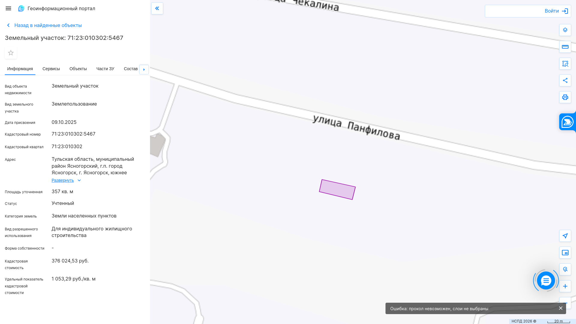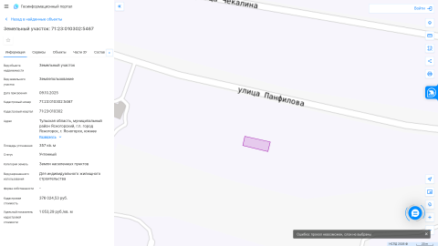 Продажа земельного участка из земель населенных пунктов земельных назначения с кадастровым номером 71:23:010302:5467, площадь 357 кв. м, адрес:Тульская область, муниципальный район Ясногорский, городское поселение город Ясногорск, город Ясногорск, южнее земельного участка с кадастровым номером 71:23:010302:6, вид разрешенного использования: для индивидуального жилищного строительства.