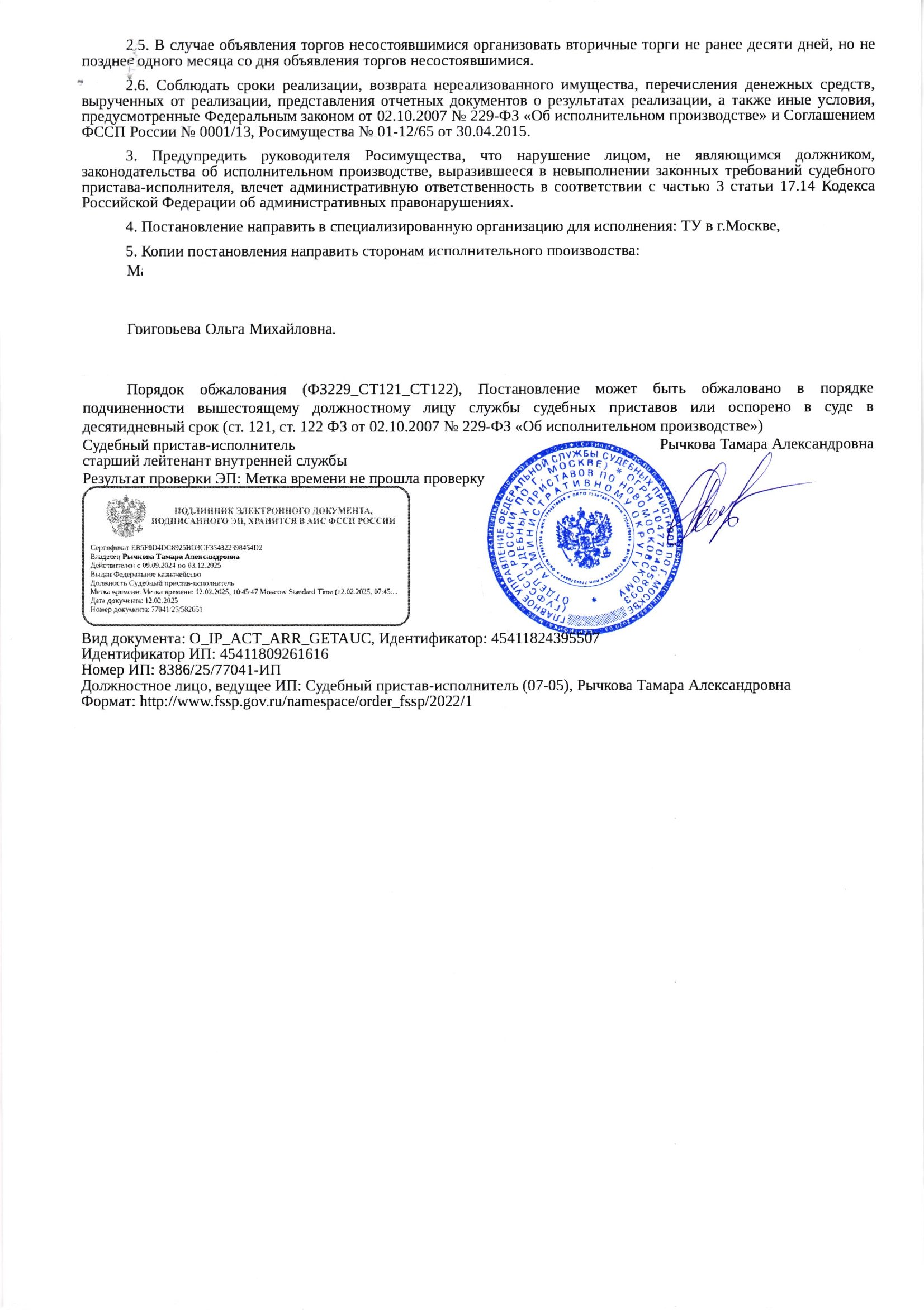 Поручение ТУ Росимущества по г. Москве, Постановление СПИ о передаче на торги, Постановление СПИ о снижении цены имущества на 15%